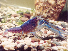 これらの写真の個体は、一昨年の夏前ごろまで、佐々木さん御本人が実際に自宅で約5年間にわたり飼育されていた個体2匹で、飼育中、いずれも大きなトラブルもなく、年1〜2回の脱皮を続けながら、全長15センチ程度(佐々木さん談)まで育った個体たちだそうである。購入したのは東京の大手総合ペットショップで「メキシコ・パインなんとか」という名前で、詳細は定かでないが、かなり高い値段で買った・・・とのこと。佐々木さん御本人は「その名前から、このザリガニがメキシコに棲息するザリガニだと思ってずっと飼育されていた」とのことだが、最近になって「世界のザリガニ飼育図鑑」を読んだところ、そこで紹介されているメキシコ産ザリガニとあまりにかけ離れているので、疑問に思い、御連絡を下さった・・・という次第である。