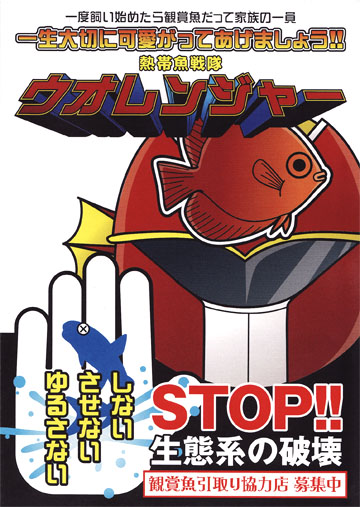 「熱帯魚戦隊・ウオレンジャー」と銘打ち、熱帯魚に関連させたキャラクターを作っての活動展開は、一見、非常にコミカルかつ軽妙な印象を受けるが、実際には、我々アクアリストの意識の低さに対する、観賞魚業界全体が抱く危機感が非常に色濃く反映されたものになっているといえよう。