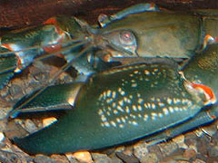 ヤビーのハサミ(第1胸脚前節・指節部)形状は、個体によって大きな違いがあるにも関わらず、この部分の相違を「2種説・複数種説」の根拠に置こうという考え方が未だに多く、特に初心者キーパーにとっては、大きな混乱の原因になっているようです(実際、この件に関する御質問メールは既に160件以上寄せられています)。今回は、この部分につきまして、別コーナー「SNIP! x SNIP!」用にと準備した何個体かの写真を中心に、実際に様々なハサミの形を御覧いただきながら、御一緒に考えてみましょう。
