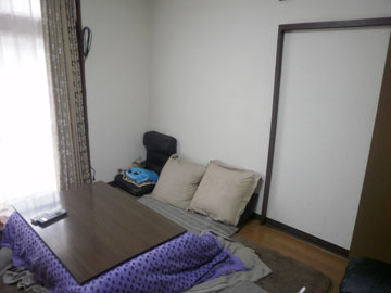 家の中をあれこれ歩き回って検討することしばし・・・。いくつかの候補の中から、今回、水槽設置場所として最終的に決めたのが、右の写真のスペースです。